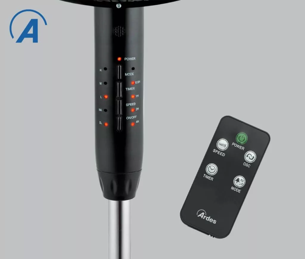 Az Ardes 5ST40PNR álló ventilátor egy modern és praktikus eszköz, amely távvezérlővel is rendelkezik. Könnyen szabályozhatja a ventilátor sebességét és működését anélkül, hogy fel kellene kelni a kényelmes fotelből. Ideális választás lehet otthoni vagy irodai használatra a kellemes hűs levegőt biztosít a felhasználói számára.