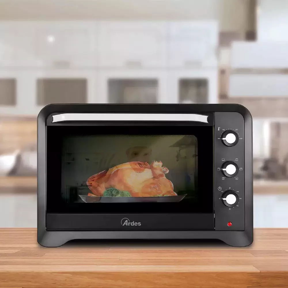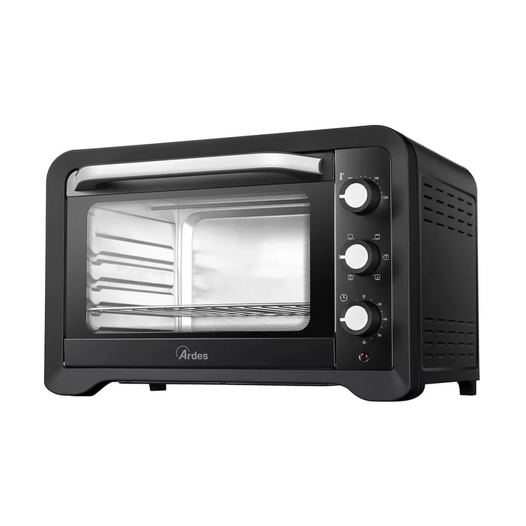 ARDES 6245PB – Megbízható társ a mindennapi sütésekhezAz ARDES 6245PB 45 literes légkeveréses elektromos mini sütő a modern konyhatechnológia, a megbízhatóság és az időtlen elegancia harmonikus ötvözete. Olyan felhasználók számára készült, akik értékelik a könnyen kezelhető, tartós és sokoldalú készülékeket, és hosszú távú befektetésként tekintenek háztartási gépeikre. A készülék fekete, prémium megjelenése bármely konyhában jól mutat, miközben kompakt méreteivel mégis kiváló sütési kapacitást kínál.Tágas kapacitás és praktikus kialakításA 45 literes űrtartalomnak köszönhetően ez a mini sütő nem csupán kisebb adagok elkészítésére alkalmas, hanem könnyedén helyet ad nagyobb tepsinek és egészben sütött ételeknek is. A dupla üvegezésű sütőajtó kiváló hőszigetelést biztosít, így a sütés mindig egyenletes marad, miközben a külső felület kevésbé melegszik fel. A belső világítás lehetővé teszi, hogy bármikor ellenőrizhesse a sütés folyamatát az ajtó kinyitása nélkül, ezáltal a hőveszteség szinte minimális.Sokoldalú sütési megoldások a mindennapokraAz ARDES 6245PB 6 különböző sütési funkciót kínál – felső sütés, alsó sütés, alsó-felső sütés, valamint ezek légkeveréses változatai. A légkeverés gyorsabb, egyenletesebb hőeloszlást ad, így az ételek kívül ropogósak, belül szaftosak maradnak, míg a normál sütési üzemmód ideális a hagyományos, lassabb és kíméletesebb finomságok elkészítéshez. Legyen szó grillezett húsokról, omlós süteményekről vagy házi kenyérről, a készülék minden igényt magabiztosan kiszolgál.