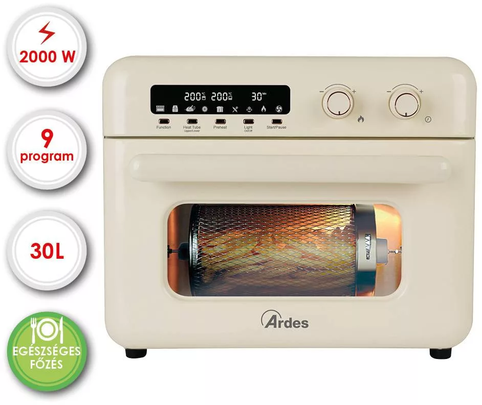 ARDES ARFRYA02 30 literes Air Fryer forrólevegős sütő, olajsütő - forgókosárral ajándék ARDES 1T20 kenyérpirítóval!