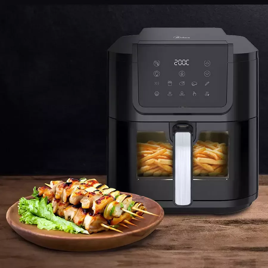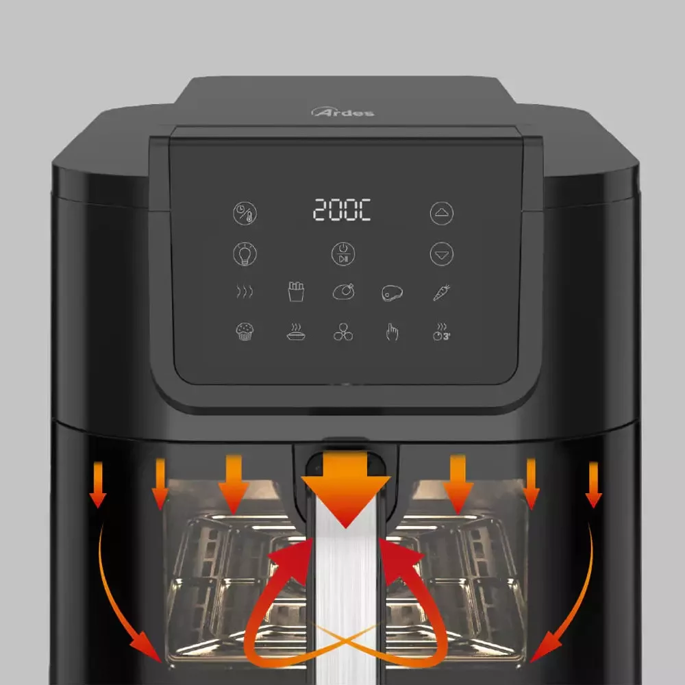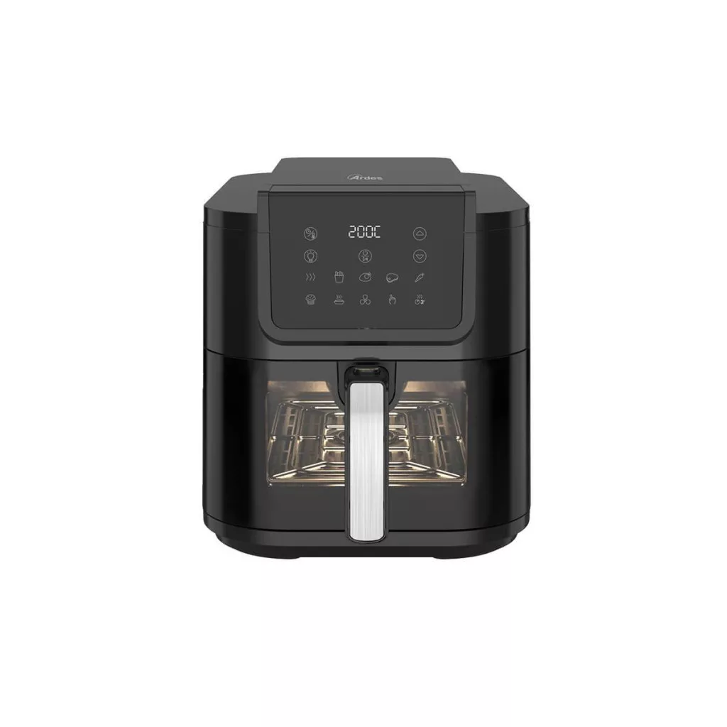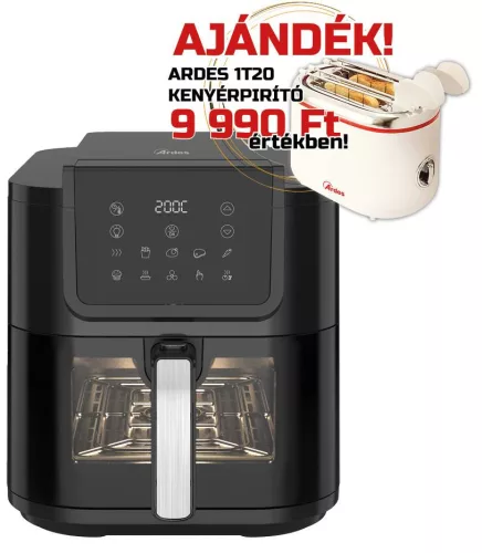 ARDES ARFRYA08LV Air Fryer forrólevegős sütő – az egészséges és kényelmes otthoni sütés új szintjeElegancia és modern technológia egyetlen készülékbenAz ARDES ARFRYA08LV Air Fryer forrólevegős sütő a modern konyhatechnológia és az elegáns formatervezés tökéletes ötvözete. Stílusos, fekete kivitelben, digitális érintővezérléssel és áttekinthető digitális kijelzővel készült, így kezelése egyszerű és kényelmes. Az okosan kialakított kezelőfelület segítségével könnyedén beállítható a kívánt hőmérséklet, időtartam vagy az egyik 10 előre beállított sütési program, így minden alkalommal tökéletes eredményt biztosít – akár ropogós burgonyáról, zamatos húsról vagy ínycsiklandó süteményről van szó.Tágas, 8 literes kosár – több személy számára is ideálisA készülék 8 literes, extra hosszú kivehető kosárral rendelkezik, amely elegendő helyet biztosít akár egy egész család számára is. Egyedülálló mélysége és formatervezése kifejezetten a hosszúkás ételek, például halak, egész csirkék vagy nyársak elkészítéséhez lett kialakítva. A beépített ablak és belső világítás lehetővé teszi, hogy a sütés folyamatát bármikor megfigyelhesse anélkül, hogy ki kellene nyitnia a kosarat. Így a sütés folyamata zavartalanul, megszakítás nélkül zajlik, az étel pedig minden oldalon egyenletesen megsül.Egészségesebb sütés kevesebb olajjalAz ARDES Air Fryer legnagyobb előnye, hogy akár 80%-kal kevesebb olaj felhasználásával készíthetőek el a kedvenc ételek. A forró levegő keringetéses technológia egyenletes hőeloszlást biztosít, így az ételek kívül ropogósak, belül pedig omlósak maradnak – mindezt felesleges zsiradék nélkül. Ez az egészséges sütési mód nemcsak kíméli a szervezetet, de megszünteti a hagyományos olajsütők kellemetlen szagát is, így a konyha mindig friss és tiszta marad.Erőteljes és energiatakarékos működésA 1700 wattos teljesítménynek köszönhetően a készülék gyorsan felmelegszik és hatékonyan dolgozik, így jelentősen rövidebb idő alatt készülnek el az ételek. Az energiatakarékos működés révén kevesebb áramot használ, mint egy hagyományos sütő, miközben az eredmény legalább olyan ízletes és egyenletes. Ez a technológia nemcsak a sütési időt, hanem a háztartás energiafelhasználását is optimalizálja – gazdaságos és tudatos választás minden otthonban.Praktikum és könnyű tisztíthatóságA mindennapi használat során különösen fontos a könnyű tisztíthatóság. Az ARDES ARFRYA08LV esetében a tapadásmentes bevonatú grillrács és kosár egyszerűen kivehető és kézzel elmosható, így a karbantartás gyors és higiénikus. A beépített világítás fényforrása cserélhető, kifejezetten ehhez a készülékhez lett fejlesztve, így hosszú távon is megbízható működést garantál.