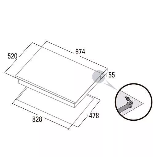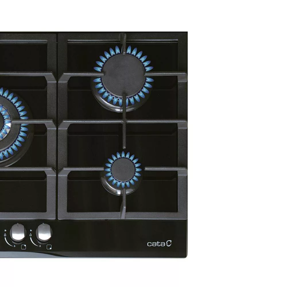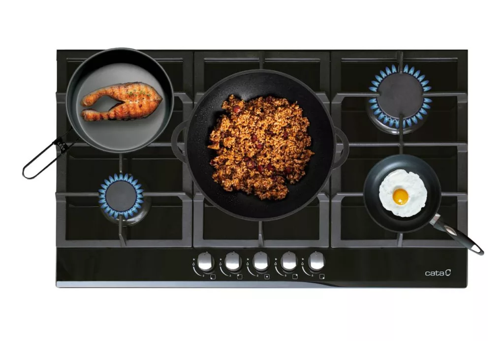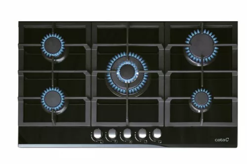 5 gázégő égésbiztosítóval, automata szikragyújtás, fekete üveg felület, öntöttvas rács, teljesítmény: 11 kW, 2 db közepes gázégő - 2x1,75 kW, 1 db tripla koronás WOK gázégő - 3,5 kW, 1 db nagy gázégő - 3 kW, 1 db normál gázégő - 1 kW