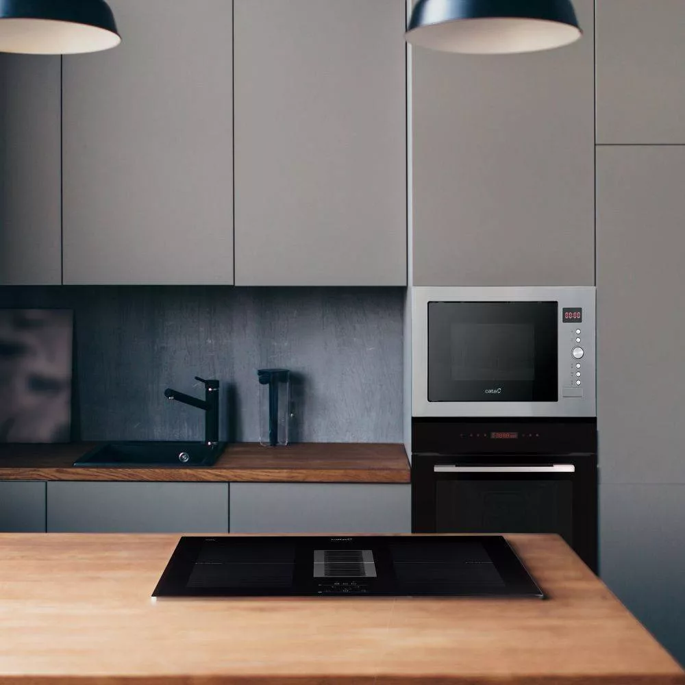 32 literes űrtartalom, 900W teljesítmény, 1100W kvarc grill teljesítmény, digitális programozás és időzítő, 10 program, súlyautomatika, automata kiolvasztás, inox belső tér és ujjlenyomatmentes inox előlap, 315mm átmérőjű tányér, HŐLÉGKEVERÉS!