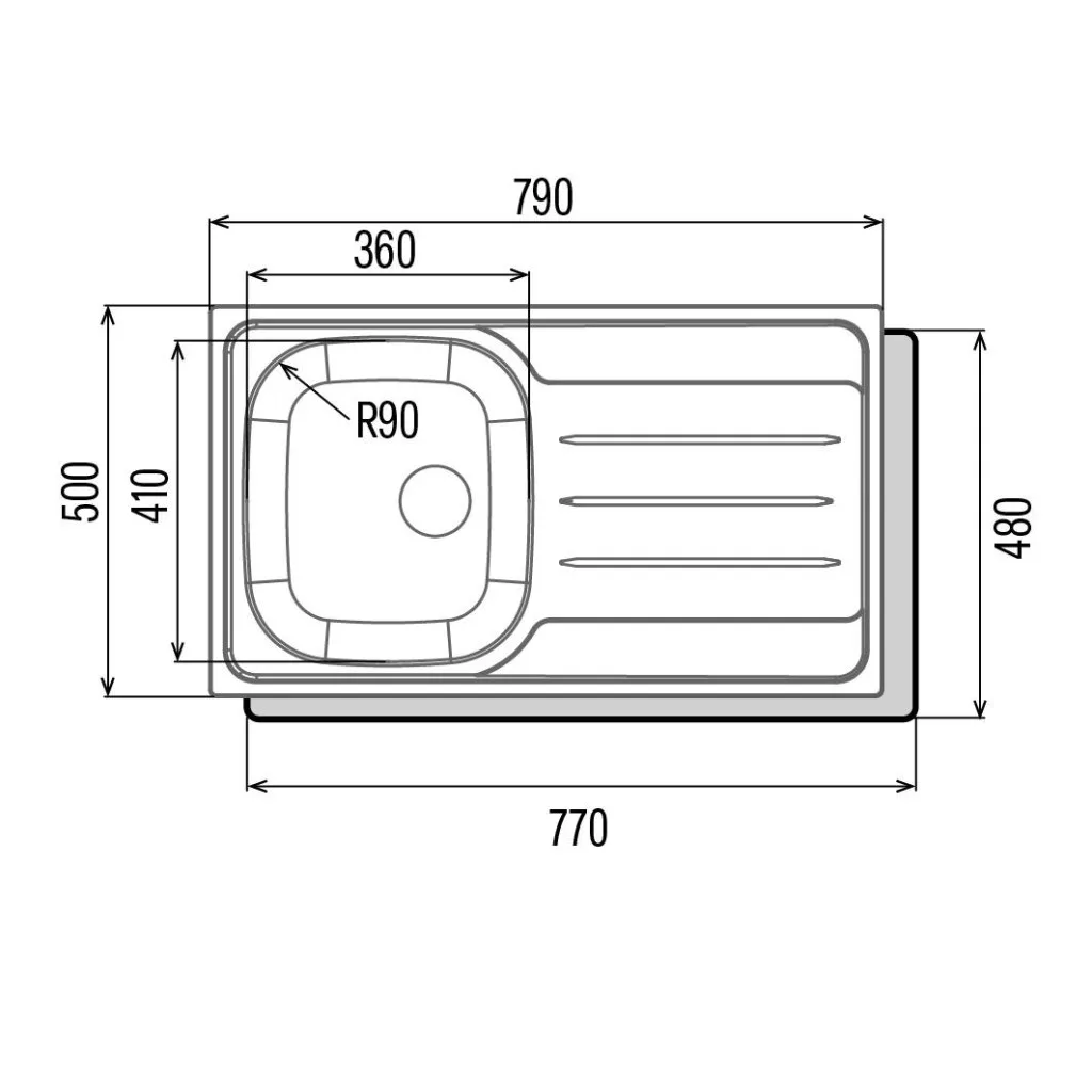 Letisztult megjelenés és időtálló kialakításA CATA CDL-1 REV egymedencés munkalapra szerelhető mosogatótálca tökéletes választás azoknak, akik a praktikumot és az elegáns megjelenést egyaránt fontosnak tartják. Kiváló minőségű AISI304 rozsdamentes acélból készült, amely nemcsak modern megjelenést biztosít, hanem hosszú élettartamot is garantál. A klasszikus acélszín tökéletesen illeszkedik bármilyen konyhai stílushoz, legyen szó minimalista vagy tradicionális berendezésről.Funkcionalitás kompromisszumok nélkülAz egymedencés kialakítás mellé praktikus csepegtetőfelület társul, így a mosogatás minden mozzanata kényelmesen és rendezetten végezhető. A bal oldalon elhelyezett medence 180 mm-es mélysége ideálissá teszi a nagyobb edények, serpenyők tisztításához is. A 790x500 mm-es teljes tálcaméret elegendő helyet biztosít a mindennapi használathoz, miközben helytakarékos megoldás marad a kisebb konyhákban is. A finoman ívelt, R90-es sarokkialakítás megkönnyíti a vízelvezetést, és egyszerűsíti a tisztítást.Könnyű beépítés, precíz illeszkedésA tálca munkalapra építhető kivitelének köszönhetően esztétikusan illeszkedik a konyhapultba, tökéletesen simulva a felületbe. A 770x480 mm-es kivágási méret és a 0,8 mm-es anyagvastagság révén a beszerelés egyszerű és pontos, a 45 cm széles szekrénymérethez igazodva. Ezáltal nemcsak látványban, hanem használhatóságban is a konyhai igényekhez idomul.Tartósságra tervezveA CATA CDL-1 REV mosogatótálcára 10 év garancia vonatkozik, amely jól tükrözi a gyártó bizalmát a felhasznált anyagok és a kivitelezés minősége iránt. Az AISI304 rozsdamentes acél ellenáll a korróziónak, a hőmérséklet-ingadozásnak és a mindennapos használat során fellépő igénybevételnek is, így hosszú távon is megbízható társ a konyhában.