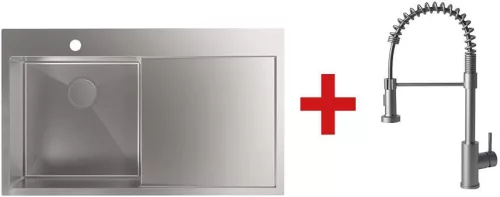 Cata akciós szett ajánlat: mosogatótálca csapteleppel. A SZETT TARTALMACATA CBS-1 40-40 D R10 mosogatótálca (02624008)1 medencés mosogatótálca csepegtetővel, munkalapra szerelhető, magas minőségű AISI 304 18/8 rozsdamentes acél, hangcsillapító habréteg a mosogató alsó részén, páralecsapodás elleni bevonat, 1,2 mm lemezvastagság, szekrényméret: 450 mm, méret: 860x510 mm, medence mélység: 200 mm tartozékok. rögzítő fülek, szifon készlet és szűrőkosárCATA XPB/A szatinált króm (02506301) Egykaros kerámiabetétes csaptelep, flexibilis zuhanyfejjel forgatható kifolyócsővel és oldalsó szabályzóval.