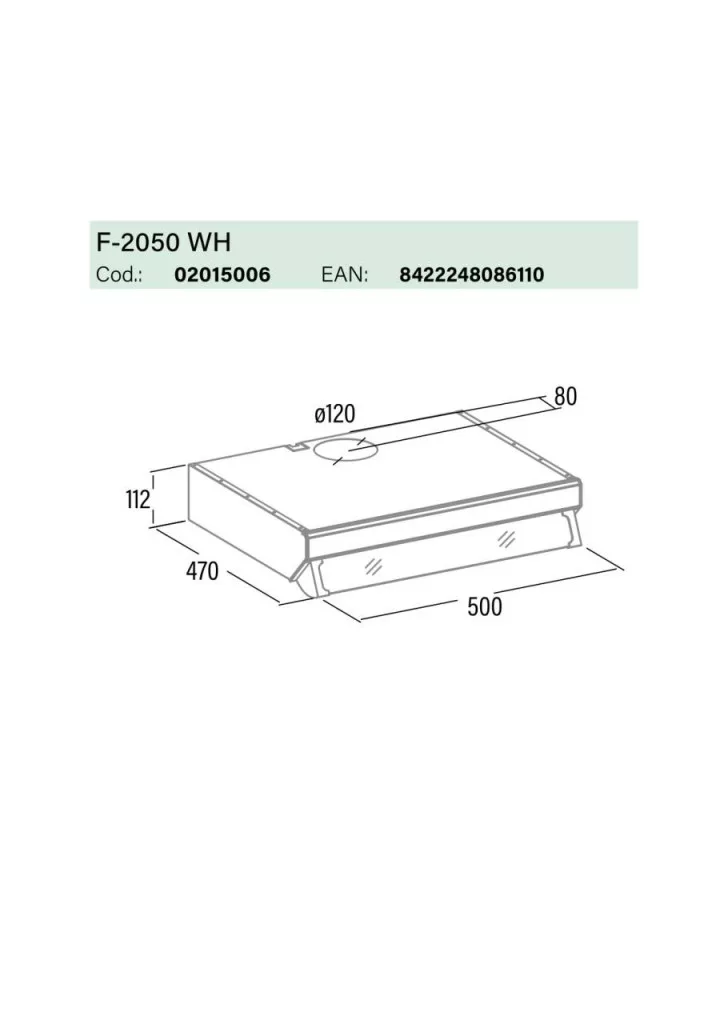 Ez a hagyományos páraelszívó önállóan falra szerelhető, vagy szekrény aljára rögzíthető, 3 sebesség fokozattal rendelkezik.