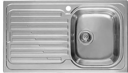 unkalapra szerelhető 18/10 rozsdamentes anyagból készült inox mosogatótálca, csaptelep számára előfúrt lyukkal, szűrőkosár, helytakarékos szifon, lefogató körmök és tömítőszalag