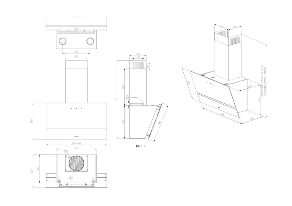 A páraelszívó két darab 1 W LED világítással van felszerelve, amelyek a főzőfelület optimális megvilágítását biztosítják. A LED fényforrások 3500 Kelvin színhőmérséklettel rendelkeznek, ami meleg fehér fényt biztosít, így kényelmes és barátságos hangulatot teremt a konyhában. A 150 mm átmérőjű csőcsatlakozás lehetővé teszi a hatékony légelvezetést. A készülék D energiaosztályú, amely a dizájnközpontú modellek esetében gyakori, és a funkcionális teljesítmény mellett figyelembe veszi az energiafelhasználást is.