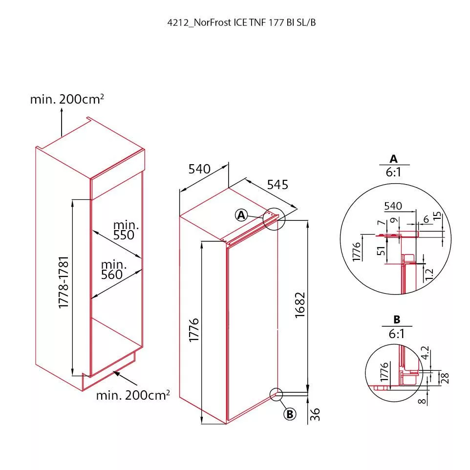 Nodor NorFrost ICE TNF-177 BI SL beépíthető fagyasztószekrény egyedi tulajdonságai:Beépíthető fagyasztószekrény NO-FROST technológiával, 178 cm magas, 200 literes fagyasztó, elektronikus hőmérséklet, 7 db fagyasztó fiók, fogyasztás: 231 kWh/év, fagyasztó kapacitás: 9 Kg/24 óra, zajszint: 41 dB(A), megfordítható ajtónyitás