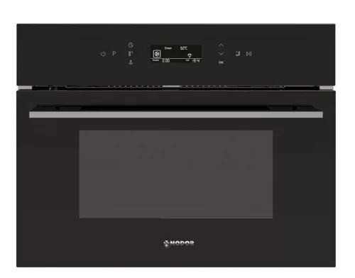 Az új Nodor sütők a design és a funkcionalitás közötti egyensúly remek példái. A minimalizmus nem mond ellent a funkcionalitásnak; teljesen sík előlapok, egyszerűség és az egyenes vonalak amik megkönnyítik a tisztítást. A 3,9” grafikus szöveges kijelző érintővezérléssel. Az egyik elem, ami az új Nodor sütőknek jelleget kölcsönöz, az a fogantyú. Nem csak a króm vagy réz fényezése miatt, hanem ergonómiája és robosztus felépítése miatt is, ami tökéletesebbé teszi a háztartási készülékek kinézetét.Kiváló teljesítmény érhető el akkor is, ha szűkebb a hely, mivel a Nodor olyan kompakt termékcsaládot indít útjára, aminek Nsoft technológiával készült sütő, gőzsütő és mikrohullámú sütő a tagja.
