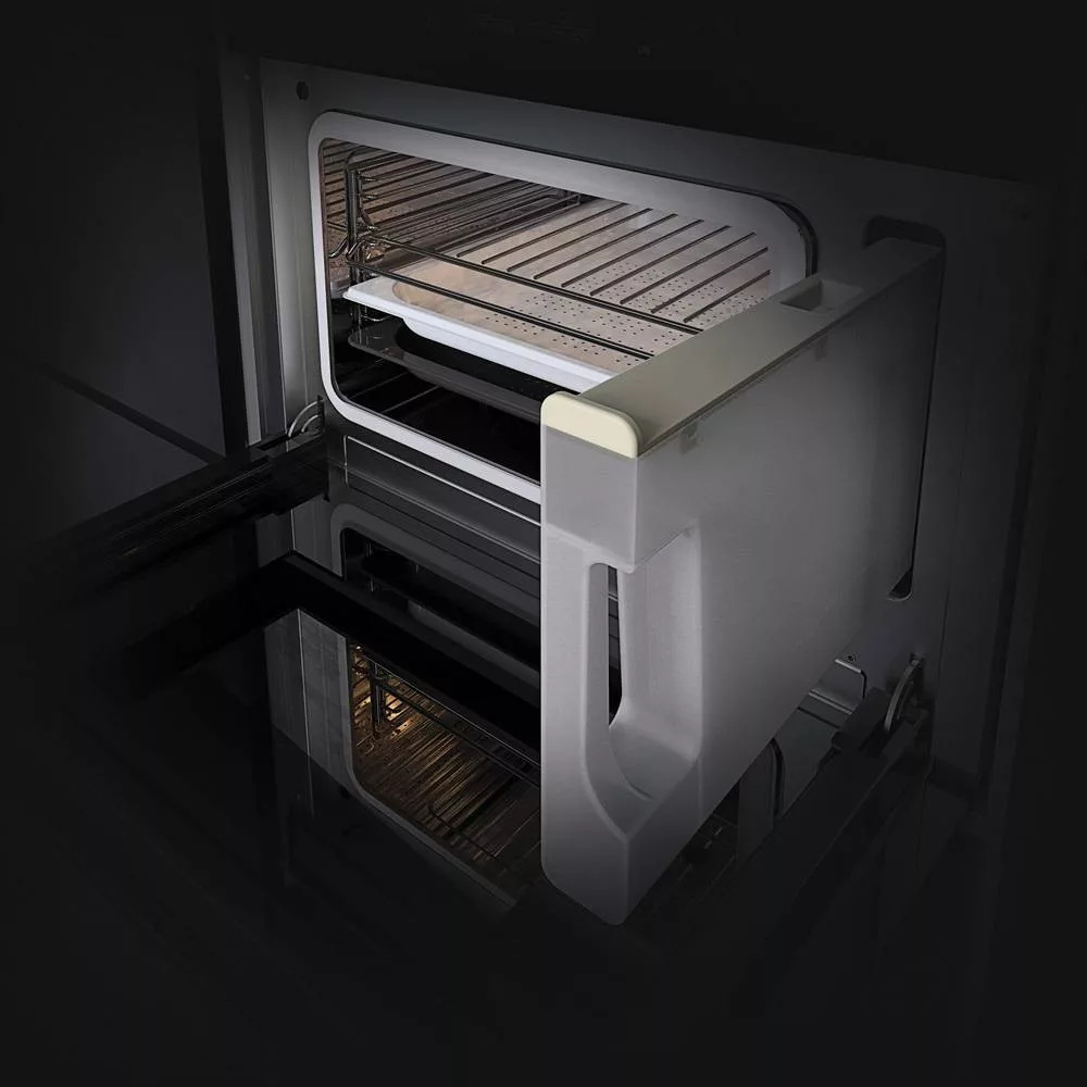 NsteelcleanRozsdamentes acélból készült sütőtér sima felülettel és puha élekkel a tisztítás megkönnyítése érdekében.