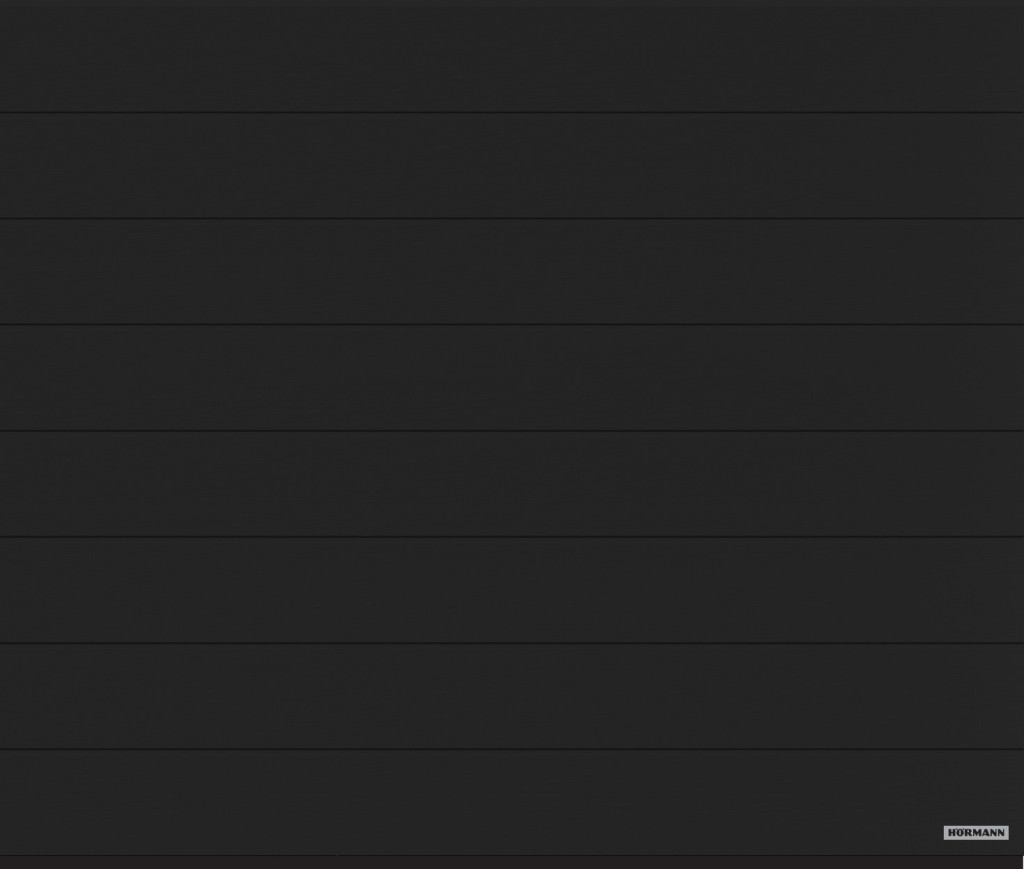 A szekcionált kialakítás függőlegesen nyílik, majd a mennyezet alatt fut tovább, így a garázs előtt és belül is több hasznos hely marad. A Mélyfekete szín egységes, prémium összhatást ad a homlokzatnak.