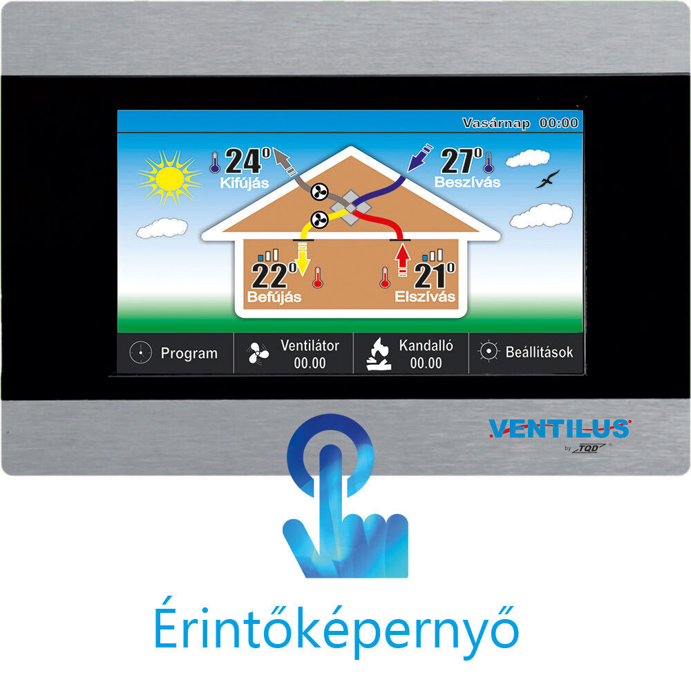 Egyedülálló színes digitális érintőképernyő kijelző és okos otthon applikáció, hogy a világ minden részéről irányítani tudja szellőztető, légtechnika rendszerét!